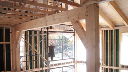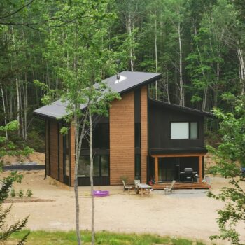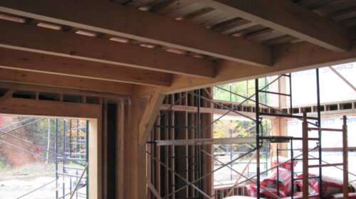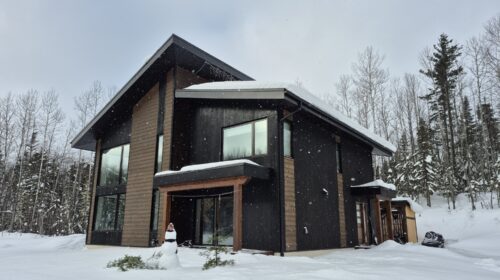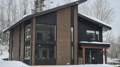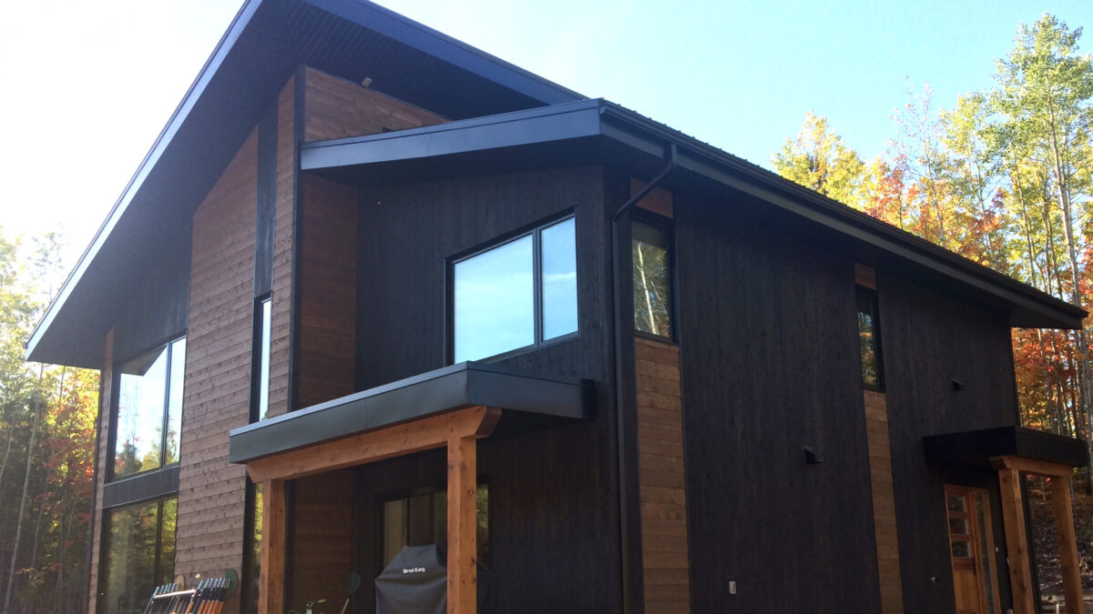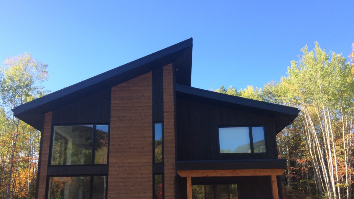 Solutions Résidentielles effectue parfois des travaux partagés. Voici une magnifique demeure que nous avons dessiné et pour laquelle nous avons construit ce que l’on appelle la « coquille ». La coquille inclue la charpente, l’installation des portes et fenêtres, l’installation des membranes, l’isolation des murs et de la toiture, l’installation des lattes et du revêtement de toiture. Dans le cas de la maison des Cimes, nous avons érigé une structure alliant des murs à double-ossature et des pièces de bois apparent. Les finitions extérieures et intérieures ont été prises en charge par le propriétaire.